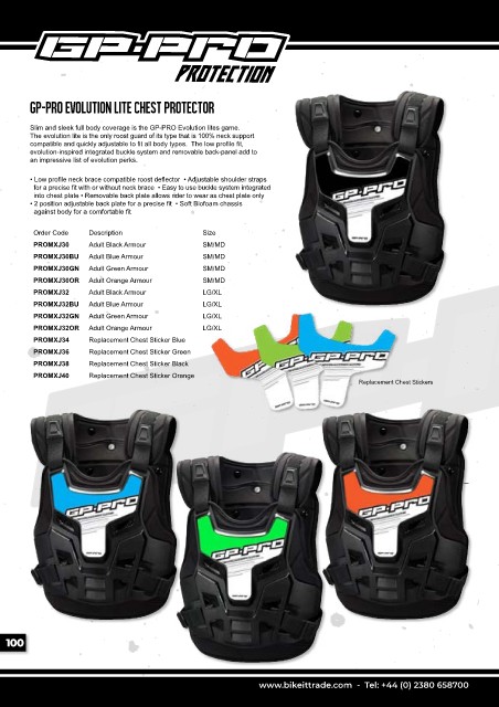 into chest plate • Removable back plate allows rider to wear as chest plate only
