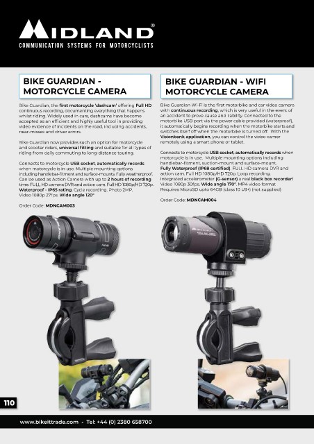 when motorcycle is in use. Multiple mounting options Fully Waterproof (IP68 certified). FULL HD camera DVR and