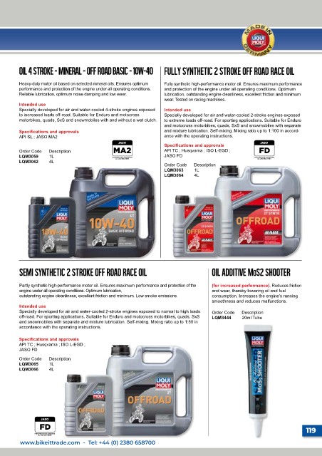 motorbikes, quads, SxS and snowmobiles with and without a wet clutch. to extreme loads off-road. For sporting applications. Suitable for Enduro