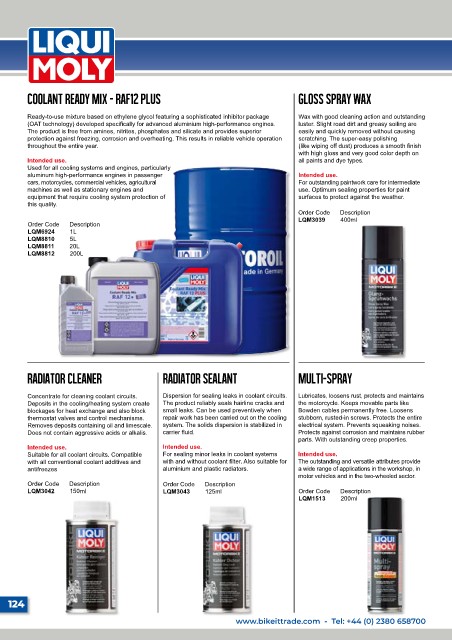Concentrate for cleaning coolant circuits. Dispersion for sealing leaks in coolant circuits. Lubricates, loosens rust, protects and maintains