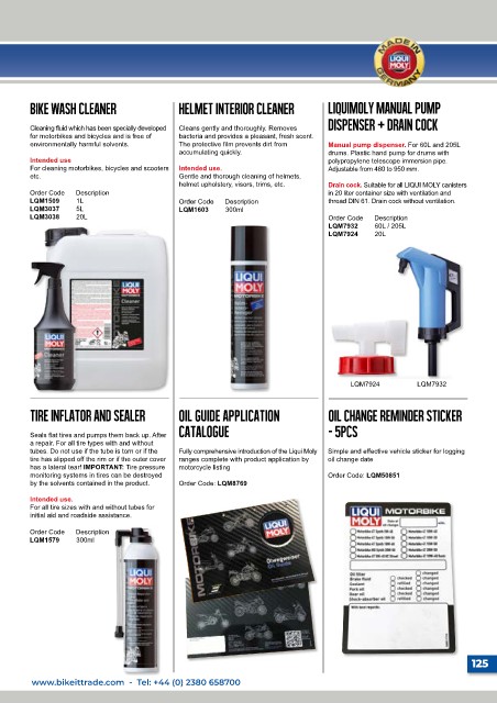 helmet upholstery, visors, trims, etc. Drain cock. Suitable for all LIQUI MOLY canisters