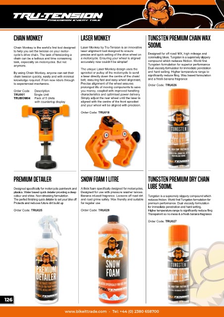 chain tension quickly, easily and with minimal a laser directly down the centre of the chain/ significantly reduce fling. Wax based formulation