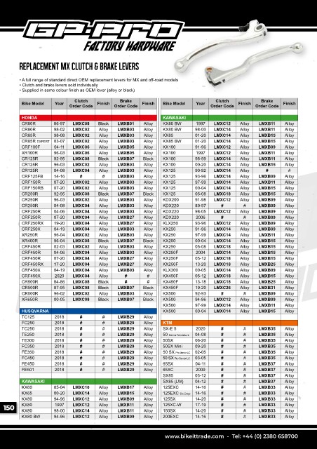 • A full range of standard direct OEM replacement levers for MX and off-road models