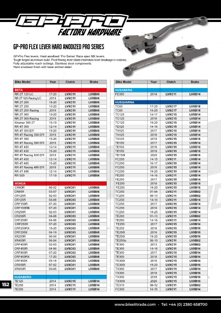 GP-Pro Flex levers. Hard anodised ‘Pro Series’ Race spec MX levers.