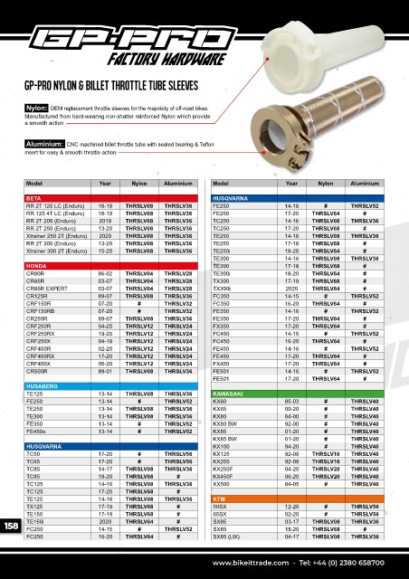 Nylon: OEM replacement throttle sleeves for the majorioty of off-road bikes.