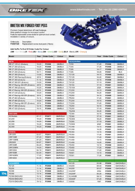 RR 4T 480 (Enduro) 15-20 FOX88 GM/BLK TC250 14-16 FOX88 GM/BLK