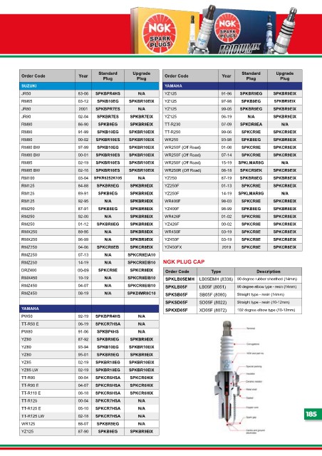 JR50 83-06 SPKBPR4HS N/A YZ125 91-96 SPKBR9EG SPKBR9EIX