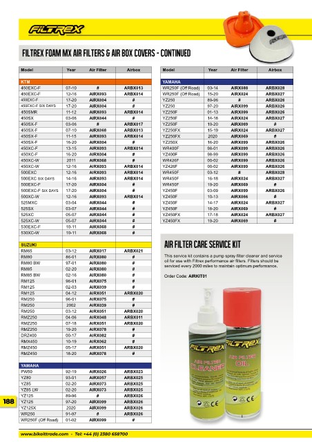 Filtrex Foam MX Air Filters & AIR BOX COVERS - CONTINUED