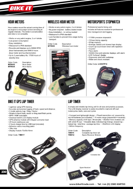 Hour meters record the actual running time of • Works on any petrol engine, 2 or 4 stroke Professional sports timing unit.