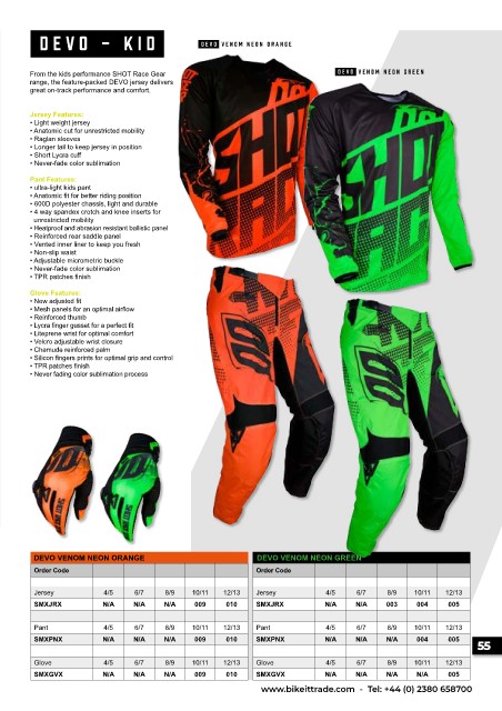 From the kids performance SHOT Race Gear DEV O VENOM NEON GREEN