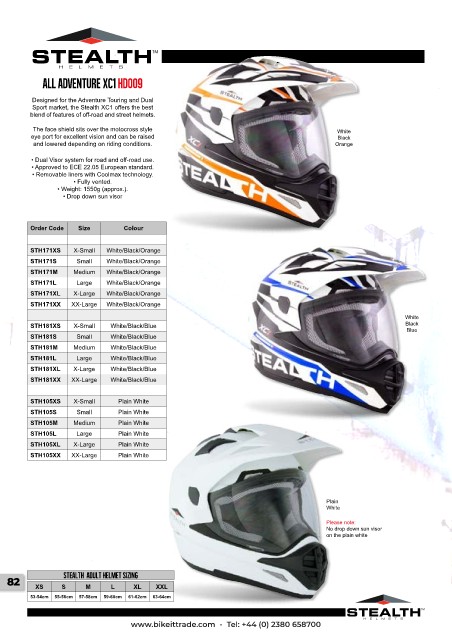 82 STEALTH Adult helmet sizing